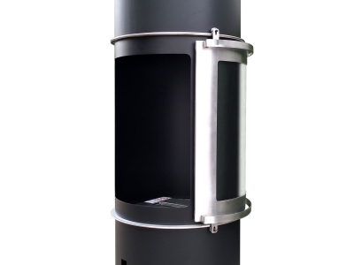 - Acabado: Acero negro y acero inox. Puerta corredera.