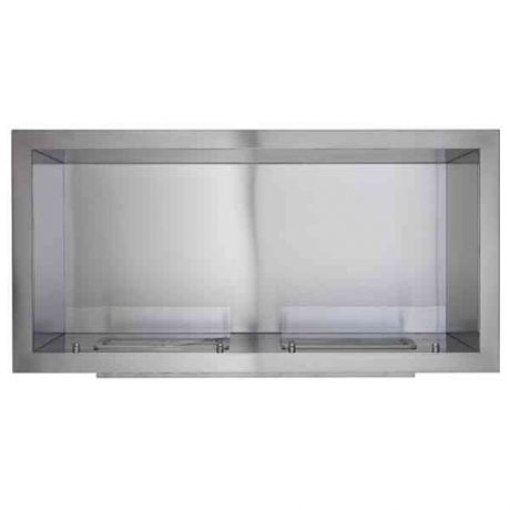 Cámara de combustión rectangular en acero inoxidable, mono-facial. Solución ligera y versátil destinada a ser encastrada y que alberga dos quemadores de 2 litros rectangulares.