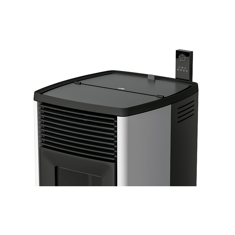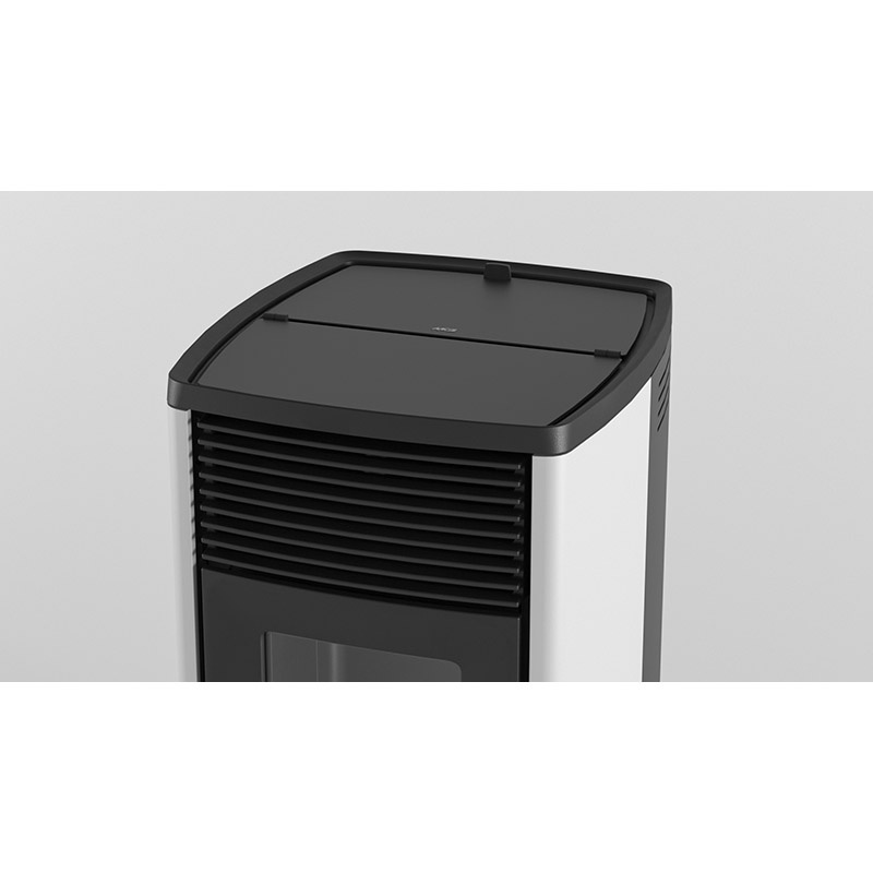 En este producto, la capacidad del cajón de cenizas se ha aumentado hasta casi 5 litros y la del compartimento de cenizas a más de 8 litros, que corresponden aproximadamente, a una semana de funcionamiento de la estufa. Además, en las versiones Hydro Matic y Comfort Air Matic se encuentra un sistema automático de raspado que impide el depósito de cenizas y evita la limpieza diaria del hogar